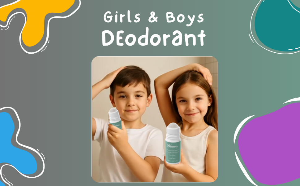 Bussani’s natural kids deodorant is aluminum-free, paraben-free, and safe for children 6+, teens, and adults. Made with crystal salt, aloe vera, and cucumber for gentle 24-hour odor protection—no stains, no harsh chemicals.